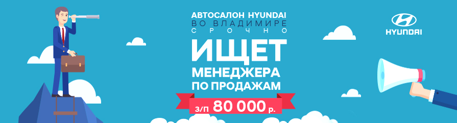 В автосалон Hyundai (г.Владимир) требуется менеджер по продажам!